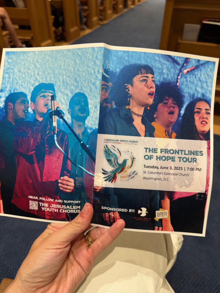 What I found there felt like oxygen: Israeli and Palestinian youth singing together in Hebrew, Arabic, and English — their harmonies rising beneath stained glass.